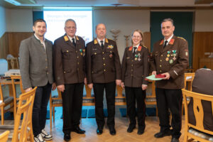HBI Michaela Gaugl eröffnete die Versammlung und begrüßte die Ehrengäste; Bürgermeister Stefan Hold, BR Johann Hierzer – Bereichsfeuerwehrkommandantstellverstreter, ABI Markus Allmer- Abschnittsfeuerwehrkommandant und Thomas Gremsl und Sieglinde Zingl – Rotes Kreuz, Orststelle Vorau