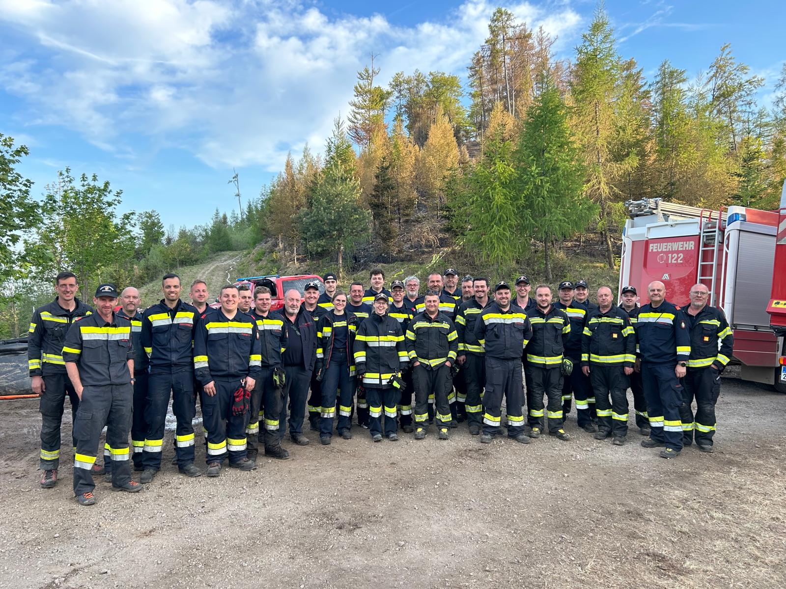Insgesamt standen – im Waldbrandzug I – acht Feuerwehren des Bereichsfeuerwehrverbandes Hartberg mit sechs Fahrzeugen und 29 Feuerwehrmitgliedern im Einsatz: